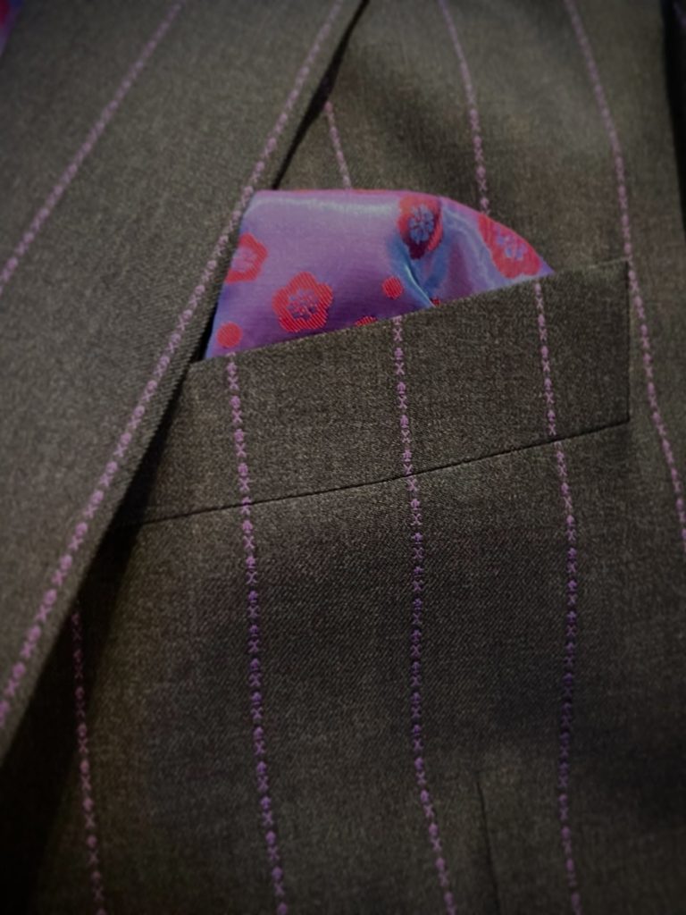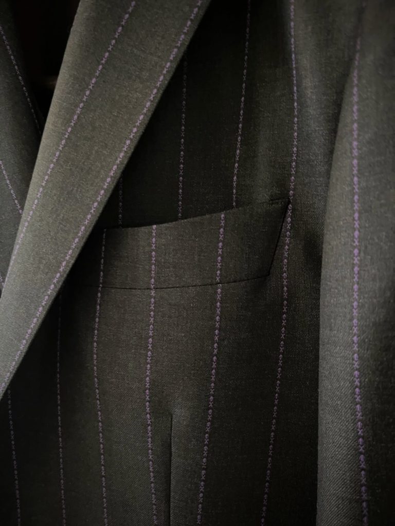 使用したスカルストライプ柄のオーダースーツです。